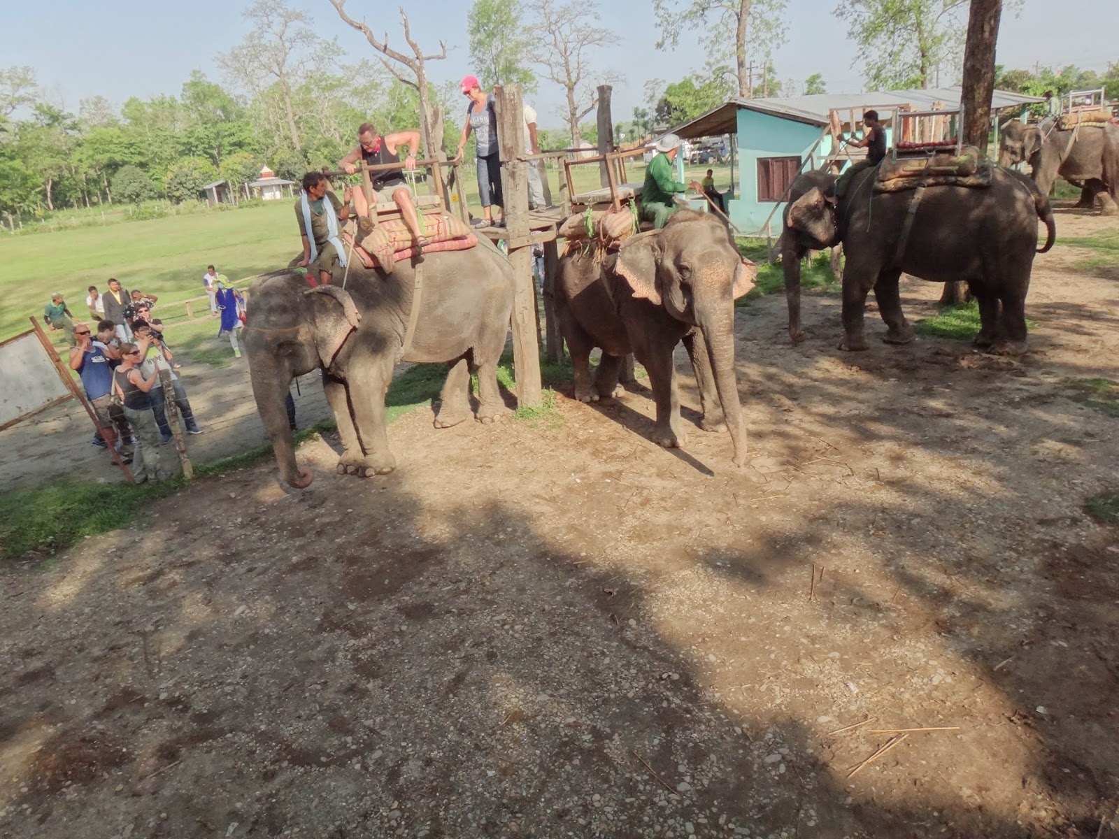 The next day we went on an elephant safari through Chitwan National Park. Chitwan is known for "its protection of One Horned Rhinoceros, Royal Bengal Tiger and Gharial Crocodile." We witnessed first hand the efforts the rhinos were making in preserving their species-- a little more than we really needed to see. We only saw the one pair of rhinos and then we didn't really see anything else. That could be due to the very loud Chinese tourists on an elephant near ours. They would not shut up! I was like, you do realize we're trying to see wildlife, right? The German girl on the same elephant as me said she almost told them to shut up-- so I wasn't the only one annoyed with them. One guy was even talking on his cell phone. :( grrrr
